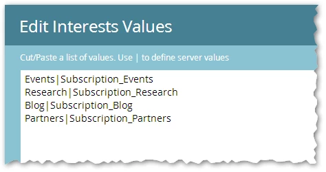 Still, <select multiple> is underutilized and I've always been fond of it. You can use some generic JS to spread a multi-select's selections into individual Booleans. You do need one placeholder field, but it can be a Boolean or Integer itself (to conserve space in the db) as it just needs to appear on the form and is neither used nor processed on the server. (No Smart Campaigns are used.)