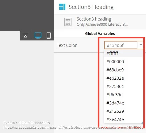 We created custom color list in template meta and its set to multiple elements on landing page. We are getting like attached image. Question is,