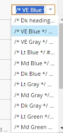 When selected, the actual value is /* VE Blue */ #17468F