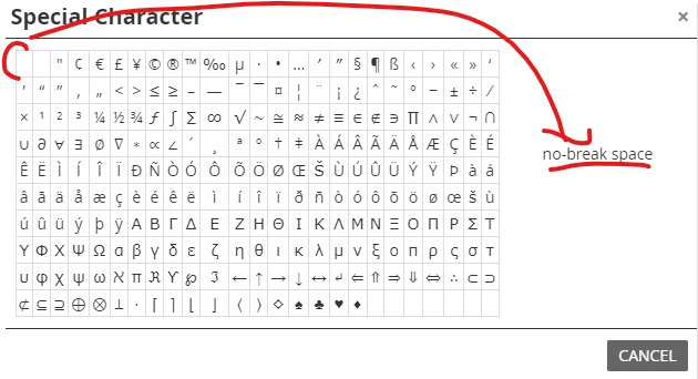 So I am mostly familiar in html and it's easy for me to add non breaking spaces and no space joiner in html but some landingpages will be created by editors without this knowledge. I tried and explayned the great Special Character Properties with adding a non breaking space between words that should not break (for example on mobile phones) and for some combined Words in our Company Language we do need the no break Joiner. But these Spaces just won't work and appear afterwards.