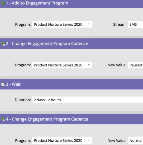 - Use another “Change Engagement Program Cadence” action to unpause them