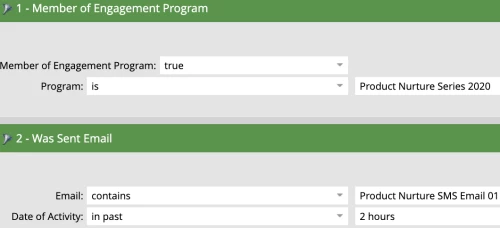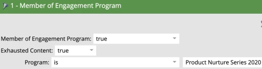 - A “Member of Engagement Program” filter to check that the person is a member of the particular nurture series we are interested in