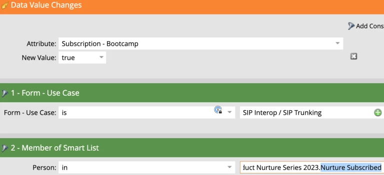 The first thing we are going to look at for this method is the smart list we are going to use to check if people should be receiving emails from our request campaigns. Here is an example of what this could look like.