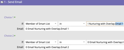 Once this is done these smart lists will be used in “Choices” within the “Send Email” step of your smart campaigns.