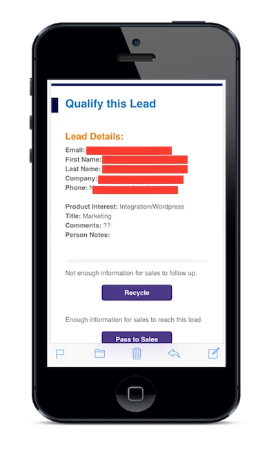 We have a email alert being sent to our inside sales whenever we have new MQL.