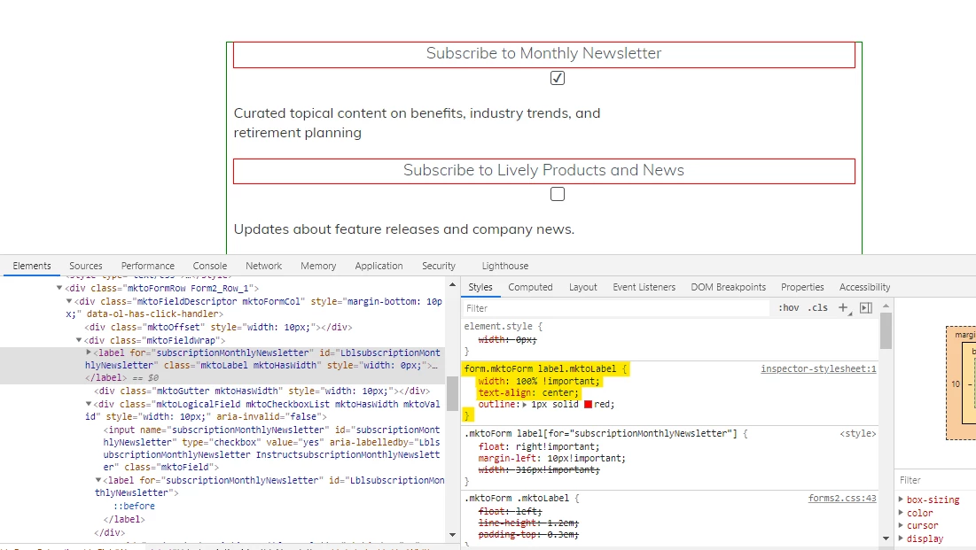 Left aligning checkboxes + Centering Form on Page + Aligning Label + Label Text Description