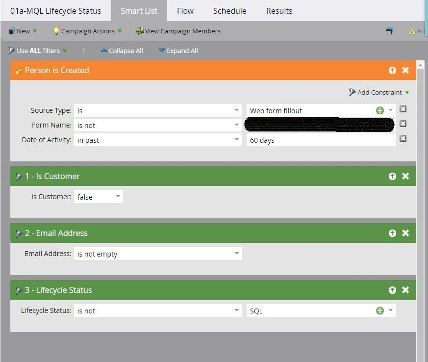 We've set up a lifecycle program that when a new lead is created their lifecycle status is changed from null to MQL, but I've noticed that the lifecycle is not updating leads lifecycle status when they are created from null to MQL. Can someone help me out here and tell me what I'm missing. Below are my smart list and flow for this process.