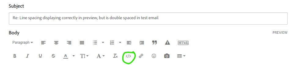 Line spacing displaying correctly in preview, but is double spaced in test email