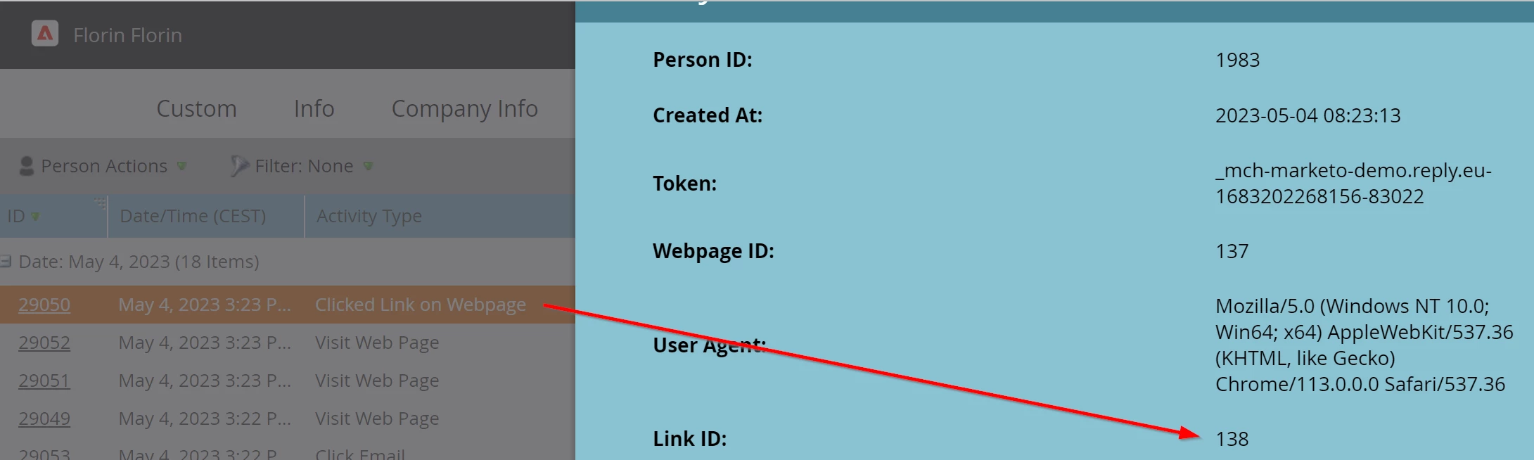 I have a link ID on my link on a landing page, but in the details of the "Clicked Link on Webpage" activity, a different ID shows: