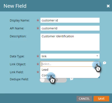 I'm unable to find "Link Object" option when I create a new field under customer objects.