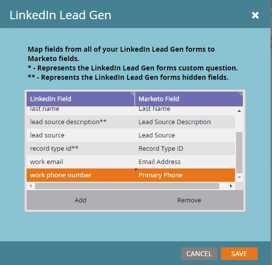Form mapping in LinkedIn Lead Gen Form