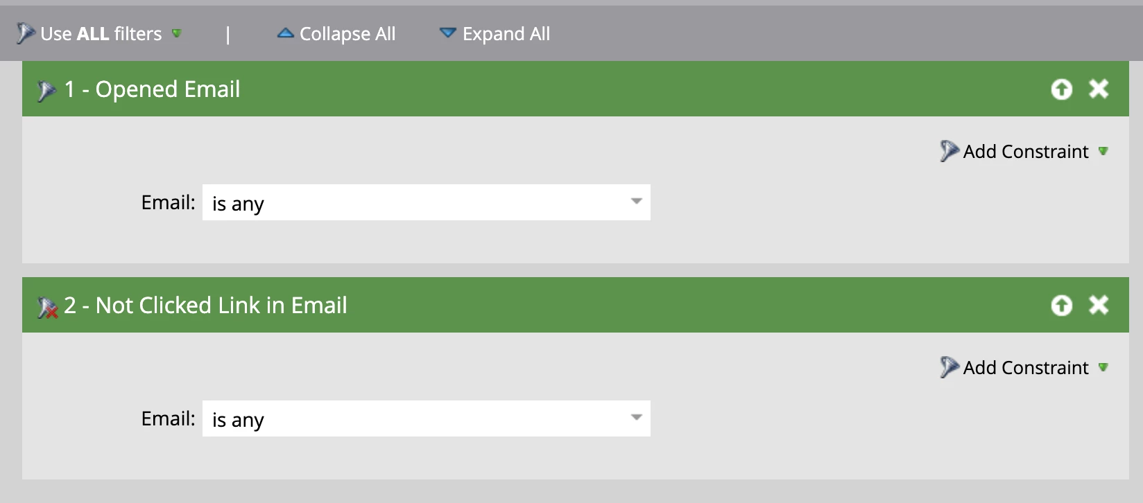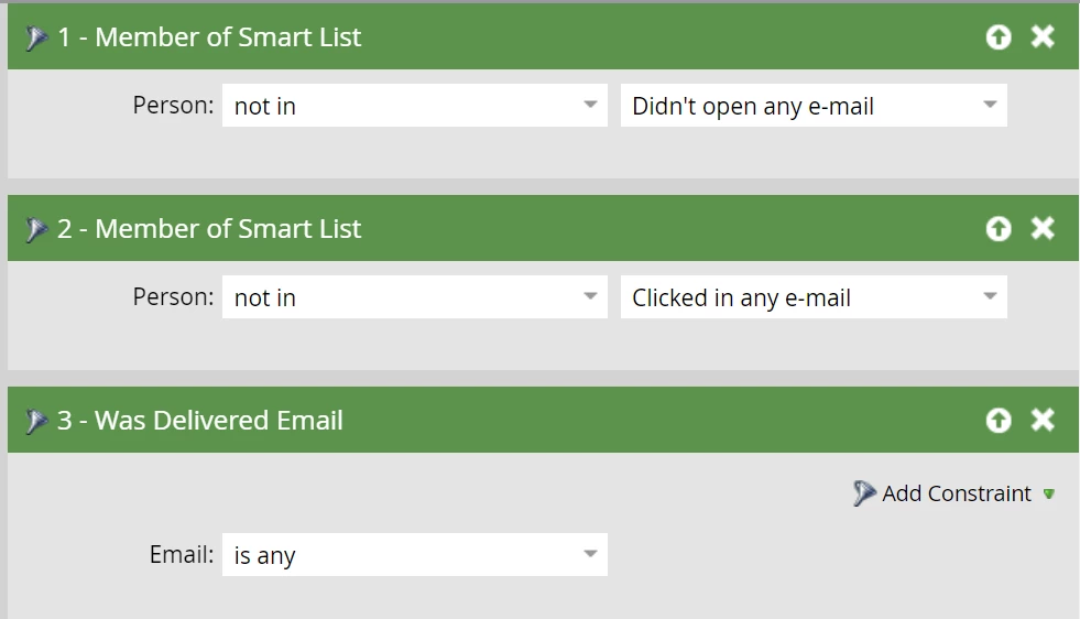 I'd like to try to gain some idea of everyone who has opened every single email but has never clicked on them to get an understanding of who might be an inactive person with an ESP that is auto opening the emails for them. Would this be the right smart list? Doesn't feel right...