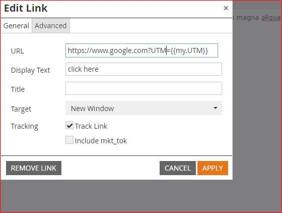 But, business need is to take out the URL from velocity token and use only UTM parameter via velocity token. In that case, Malformed Link is being created and traced in Email Link Performance report. refer below code