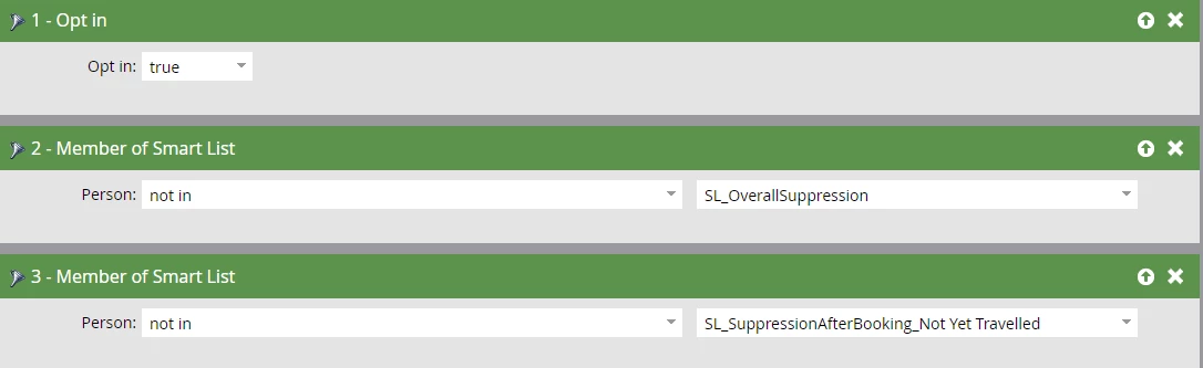 Note: When we have regionally specific emails, we add a Country filter here also