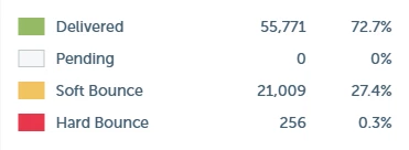 The following screenshots show the difference in delivery rates before this issue appeared (ignore emails with smaller numbers - those are tests and the filtering in the report doesn't work properly and/or crashes the page):