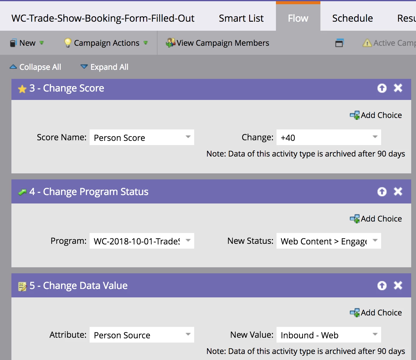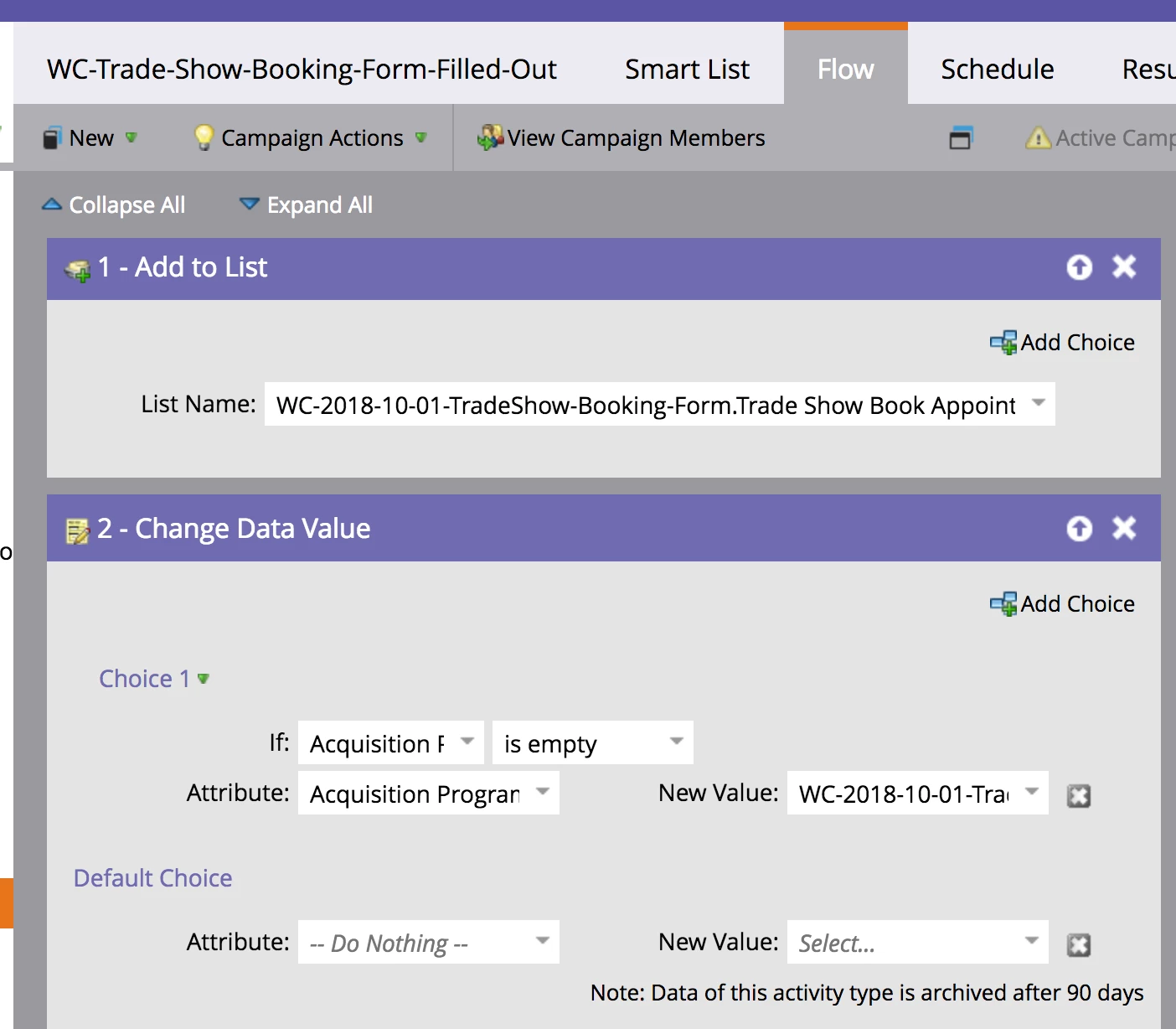 Below are screenshots of exactly how it's set up on my end. The Campaign is Requested trigger allows our WordPress person so see my campaign on her end and map our existing Marketo fields to corresponding fields in WordPress Gravity Form. To be clear, this has worked for our other forms. But now this entire form, including both the radio buttons and the dropdown menu from the form in my original post are not sending over information in either our Alert email, nor is it syncing to the SFDC campaign.