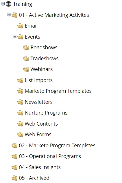Fig 1. Sample Folder Structure for Effectively Organising Assets and Programs in Marketo
