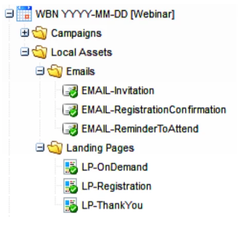 Always Include a “Global” folders for re-usable Forms, and Emails, and Landing Pages.
