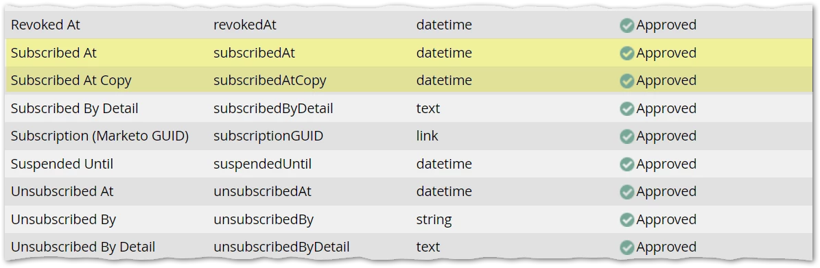 You have a robust multi-subscription model using Marketo Custom Objects, where each Subscription+Person combo has robust metadata about when somebody subscribed/unsubscribed, why, and how.