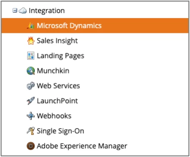 In Marketo, navigate to Admin > Integrations > Microsoft Dynamics
