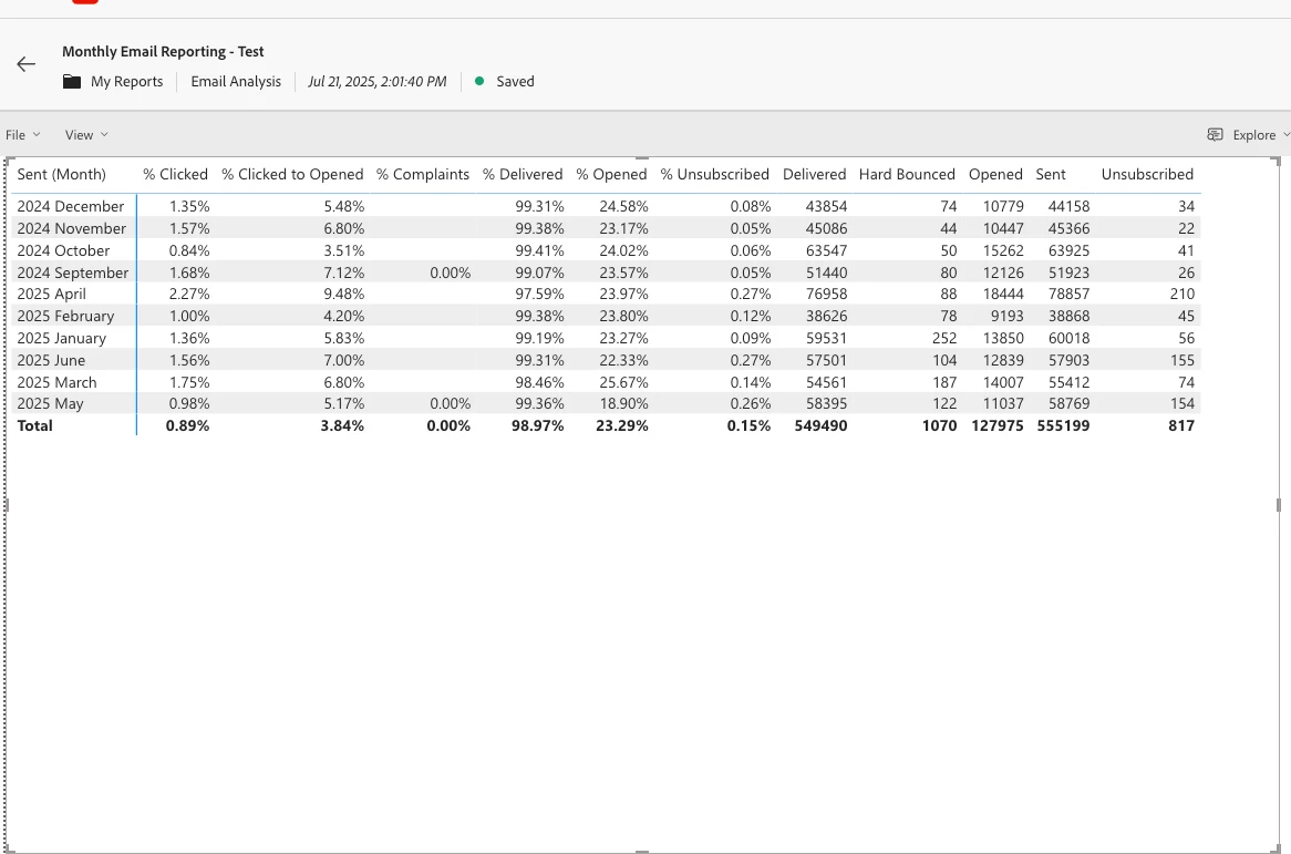 Marketo Engage Advanced Buisiness Analytics Filters by Month