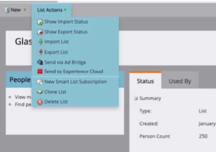 The marketing manager then goes to that list and, using list actions, syncs that list to Adobe Experience Cloud. The sync will be continuous once enabled.