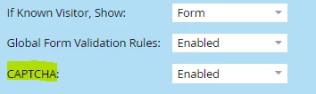 CAPTCHA must be enabled on a per form basis. This enables you to control the volume being submitted to your CAPTCHA provider as to not overwhelm purchased volumes. Once enabled on a form, the setting will be carried over whenever you cloned the enabled form.