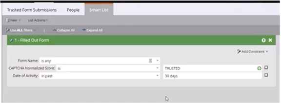 • Create Smart Lists that pull records with recent suspicious form submissions. Use these Smart Lists to exclude records from Smart Campaigns or simply for periodic review