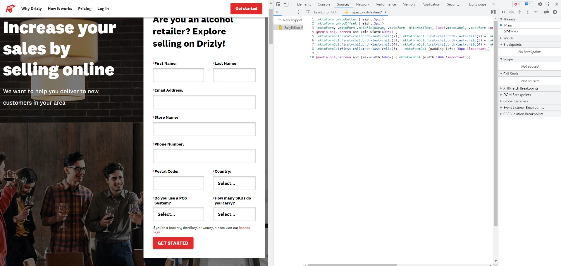 Marketo form issue - non responsive