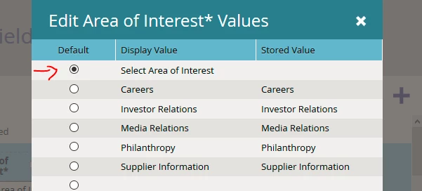 So if the set value option is added on that specific marketo form and I go to the page (contact-us/general-inquires) the "Area of interest" will be empty since there's no value set for 'default' value. Shouldn't the 'default' value appear if it's set in the marketo form?