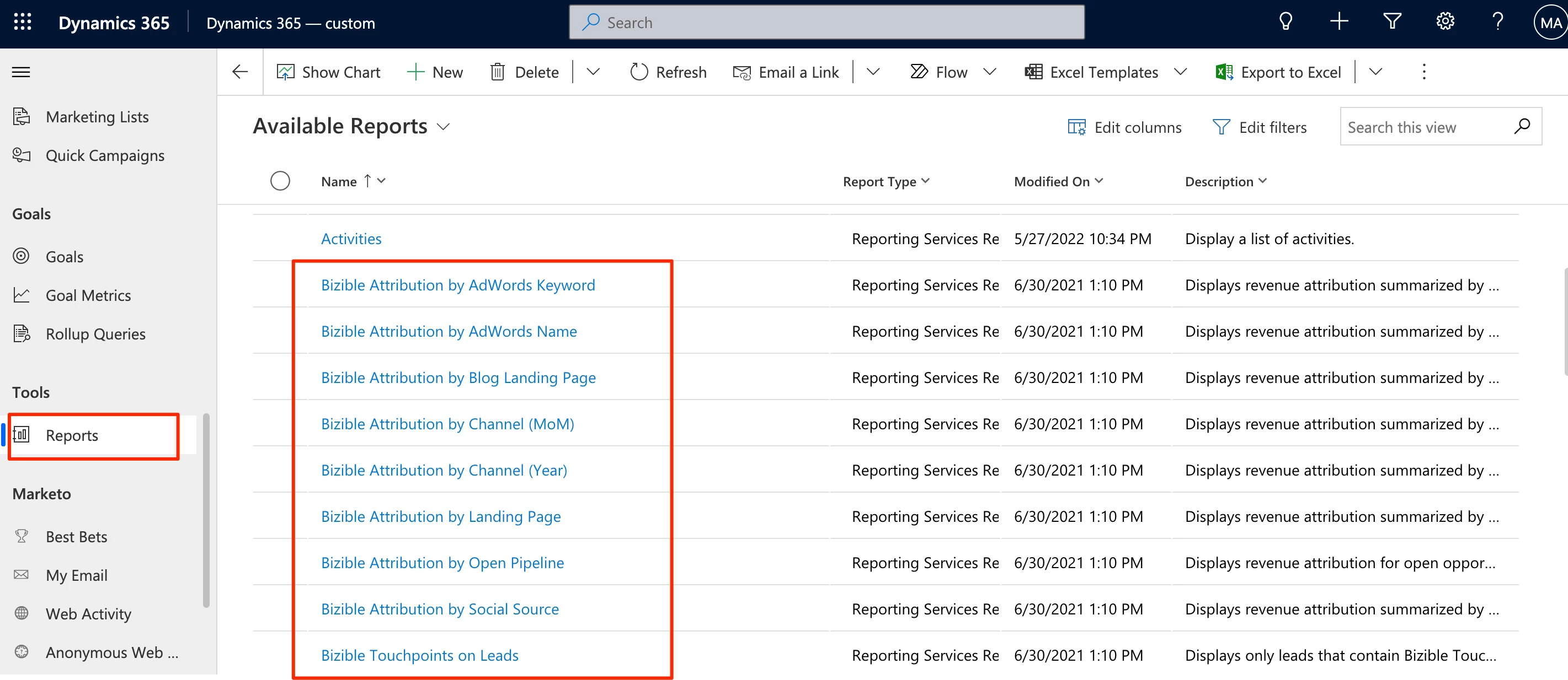 Marketo Measure (Bizible) Dynamics CRM Reports to Build