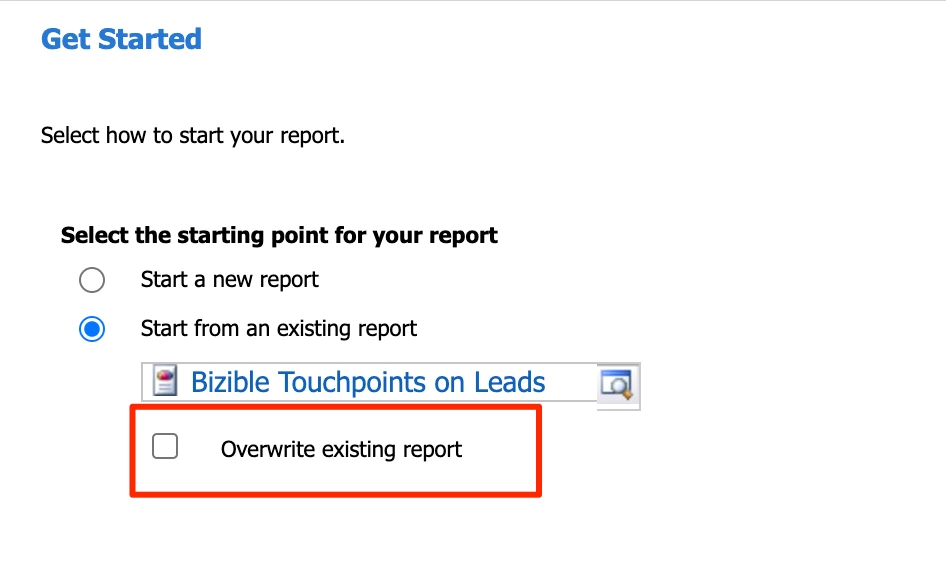 Let’s build the Buyer Touchpoints by Lead ID report first. We’ll build from the existing report titled “Bizible Touchpoints on Leads,” so click into that.