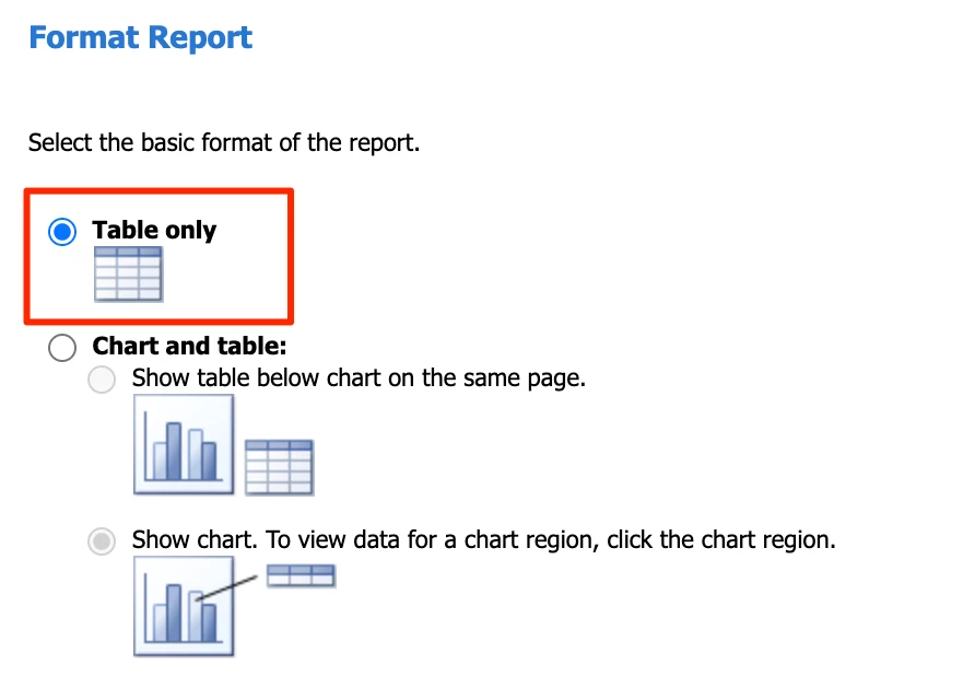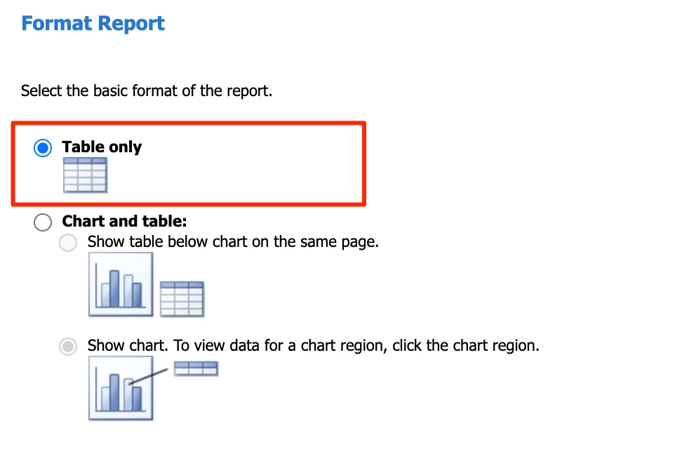 On the next screen, select Table only: