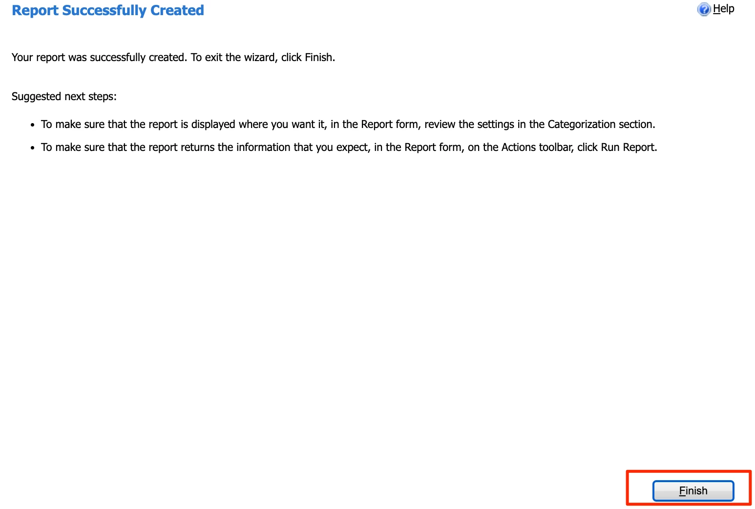 Then click “Finish” on the next window. The pop-up window will close, and you’ll then be able to click “Run Report” on the original window.