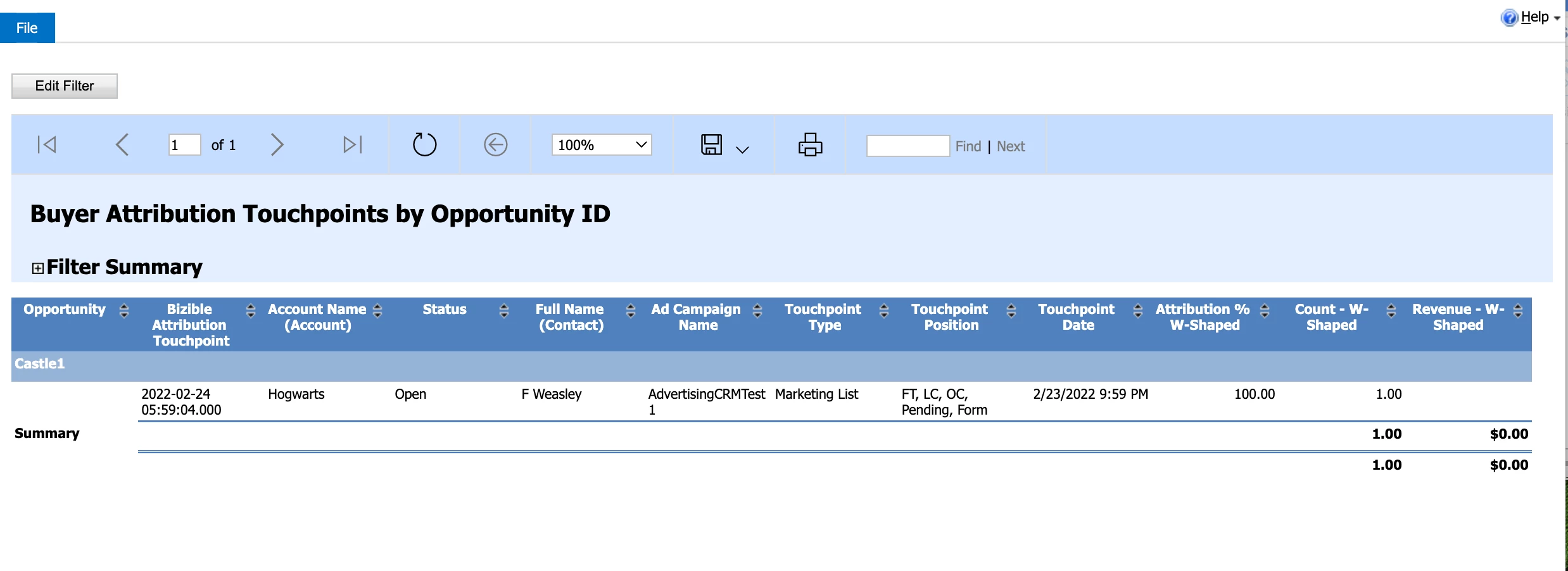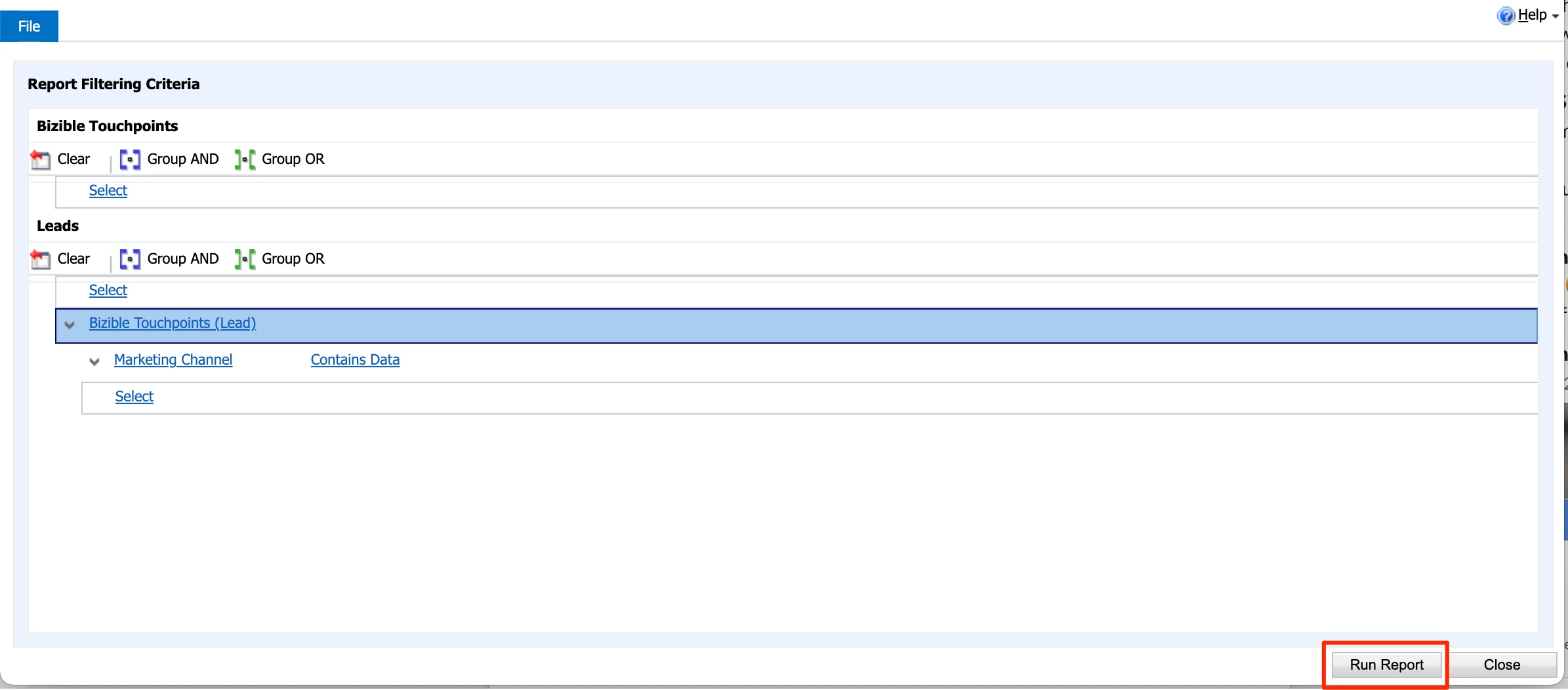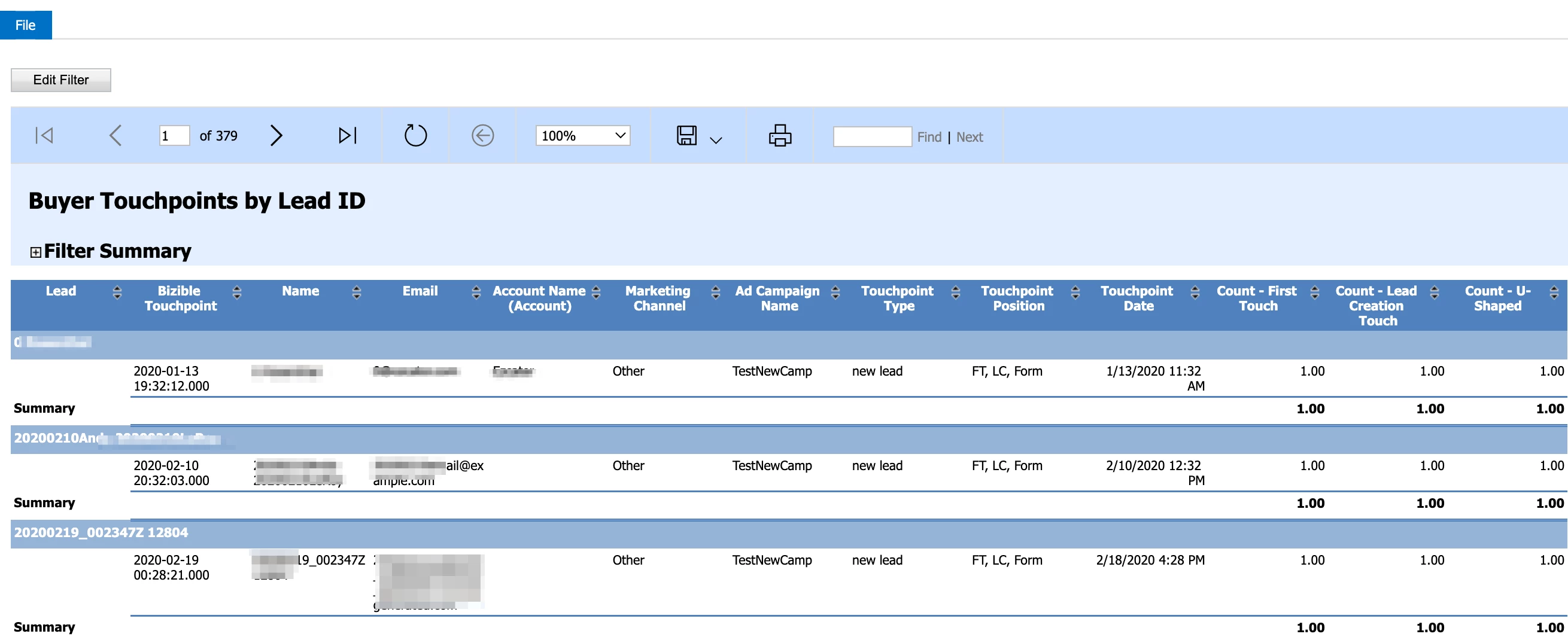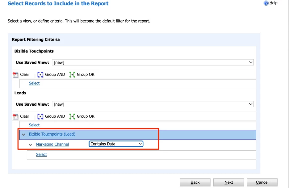 Next is where we filter the report to show ONLY Leads that do have Buyer Touchpoints. To do this, make the following adjustments: