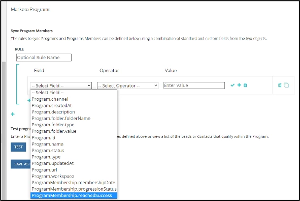- If you do use the integration, a helpful field to use is ‘ProgramMembership.ReachedSuccess” as pictured below. For example, maybe your Program is for a LinkedIn LeadGen Form and you are capturing Program Success when someone fills out the form.