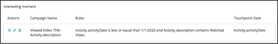 Similar to the above, this allows you to create Touchpoints from Marketo Activities. The Activities Integration offers different fields for the rule criteria (and just more fields in general). More information linked here.
