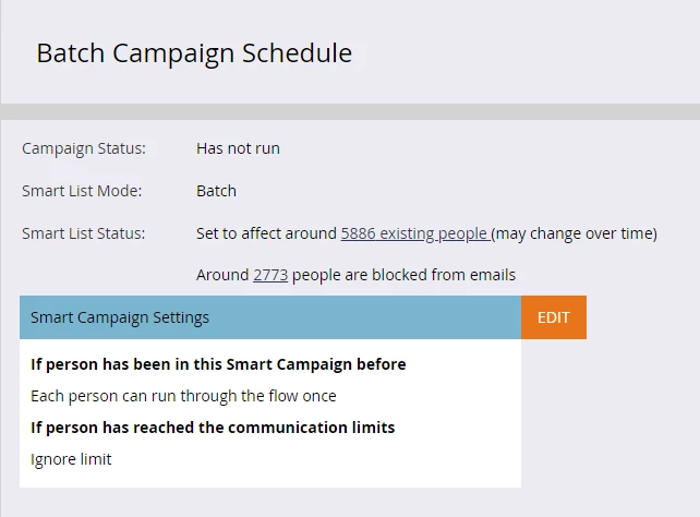 We are trying to send an email campaign to get people to opt-in. We have around 19k members in Salesforce that have not opted in and we want to reach out to them. I've set up the program but it only shows us about 5800 people, from which 2700 are marketing suspended, so that leaves us with around 13k people that are not showing up in the Smart Campaign when we try to send the email. I'm not sure how to proceed and send the email to all of the SFDC campaign members. On the campaign smartlist I only used the "member of SFDC campaign" filter. I tried different variations but same result.