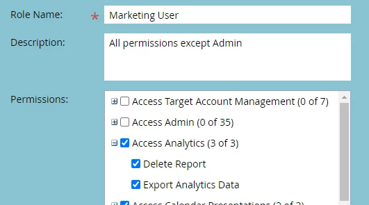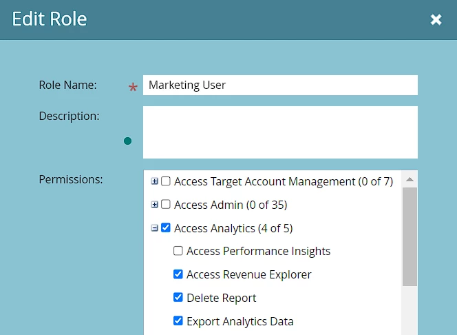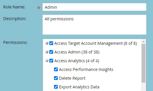 That led me to check the role details for Marketo Admins, and there's a specific line item for Performance Insights within the Access Analytics settings: