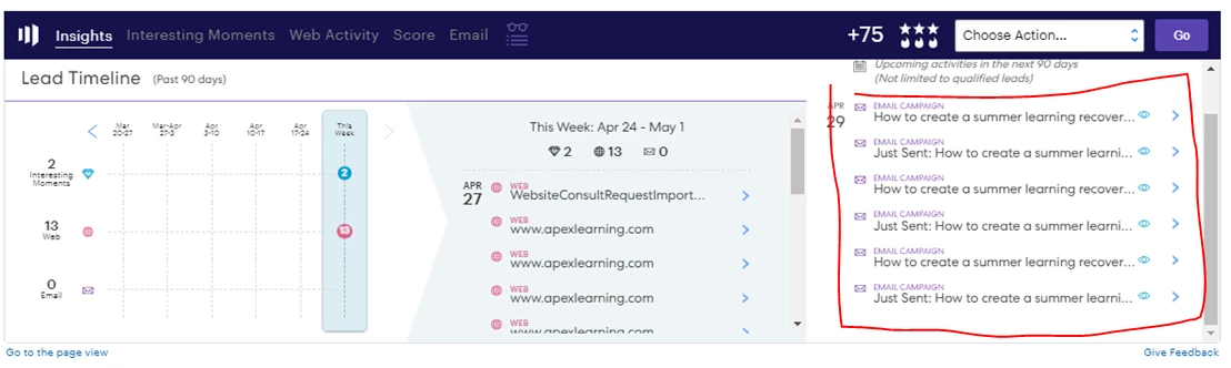 However, if you're trying to basically list out either specific emails or like, only the emails a contact engaged with, you could write those engagements as completed tasks on a contact's activity record (i.e., they click the email, you write the task in your set success flow step), and then the "important" emails are not in the MSI pane but on the contact record itself?