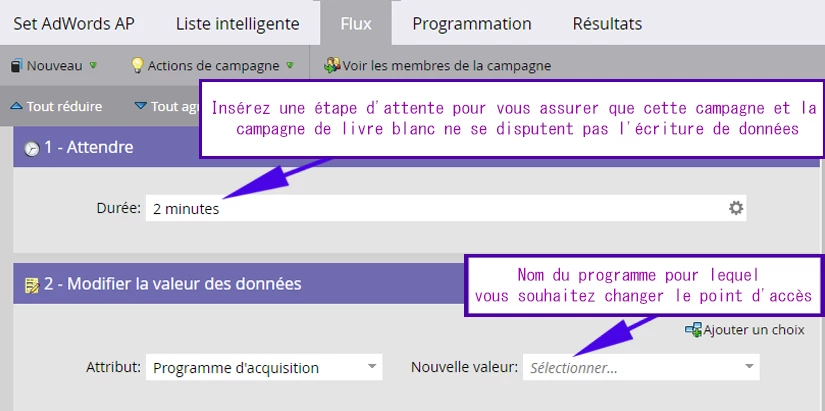 - Ce sont des programmes conçus pour le nurturing et contiennent plusieurs flux et la possibilité de régler directement les cadences individuelles