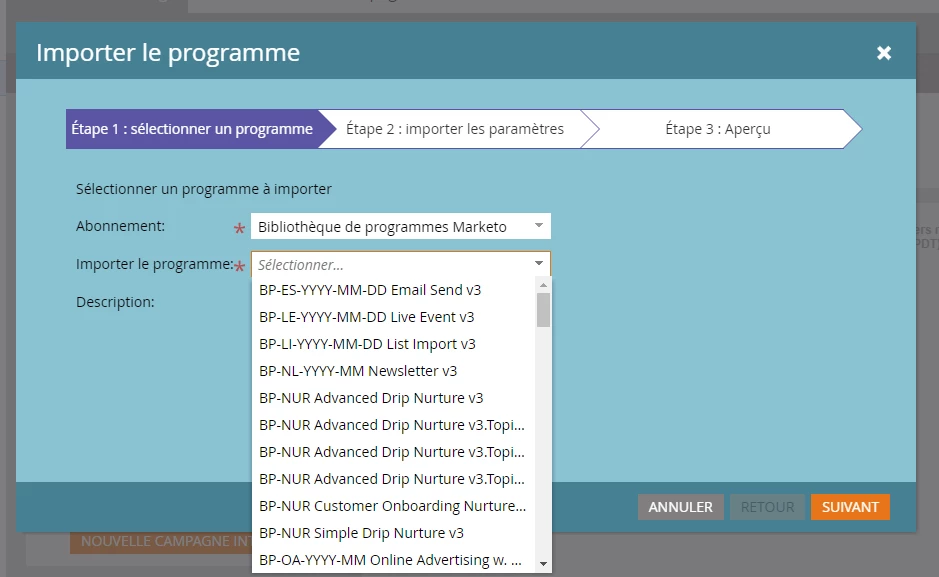 Programme dans Marketo :