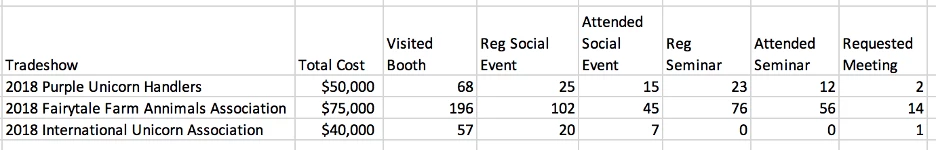 So if we go back to the original question, is my ROI good enough for me to go back to the tradeshow again next year or is there room for improvement?