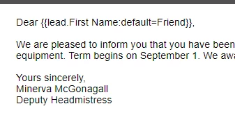 Person: Information that exists on the person record can also be used to help create a more personalized experience for users. Person tokens allow you to enter any data field on a person record such as First Name, Company Name, industry, and location directly into the email, without having to create a separate email for every single user. This also applies to custom fields. Example: Using the {{lead.FirstName}} token to enter the user’s First Name into an email that starts, “Dear {{lead.FirstName}}.”