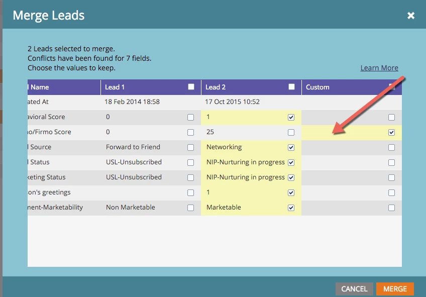 Merge Leads but don't merge Score