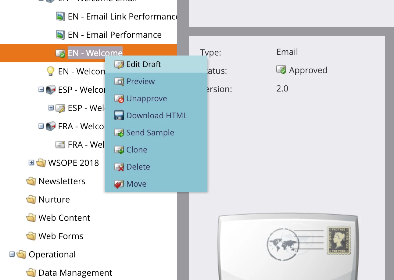 I am trying to set up an AB testing for a smart campaign: subject of triggered emails. I do not have the option to create a Champion/Challenger (AB test) when clicking on the email - see attached.