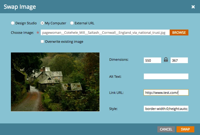 As you can see, it's generating width="550", and there is a fixed pixel height set on the image which I do not want.