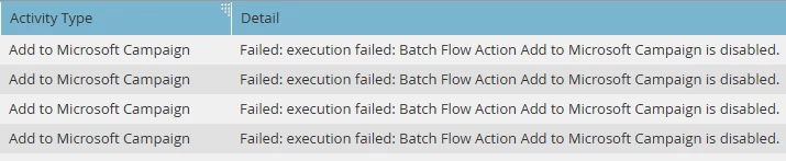 - ...because the "Add to Microsoft Campaign" feature is currently not active or is not configured properly for batch operations; essentially, you can't add people to a Microsoft Dynamics campaign using a batch process in your current setup.