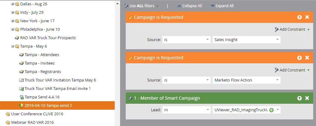 I recently tried to include multiple "Campaign is Requested" triggers in single Smart Campaigns, and one in particular is causing a headache: