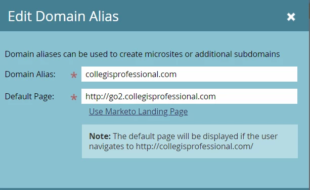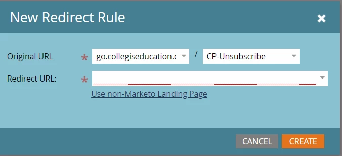 1. When I go to build my LP for the unsub page (for the new domain), it still is pulling my original domain (and CNAME) and then when I try to do a redirect from there....I can't. (See below)